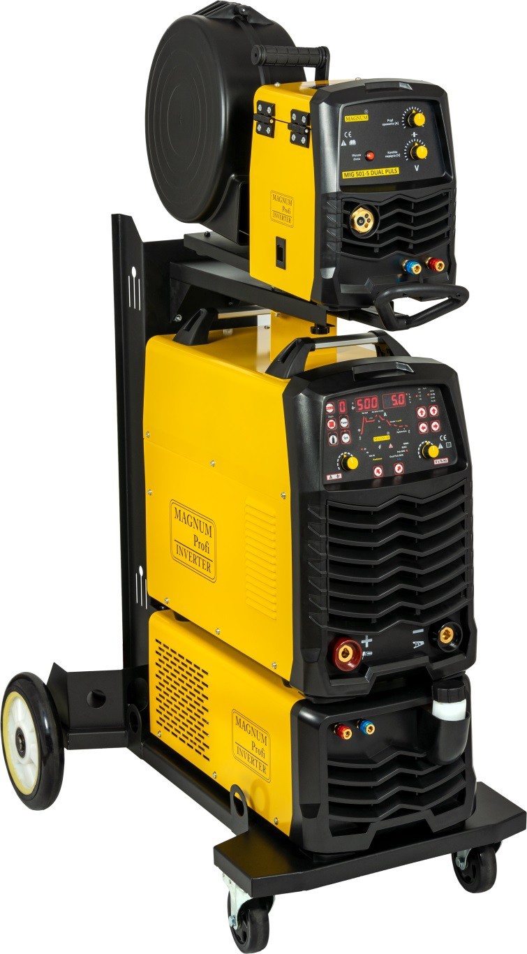 - Urządzenie spawalnicze MIG 501-S DP zintegrowane z chłodnicą i podwoziem,