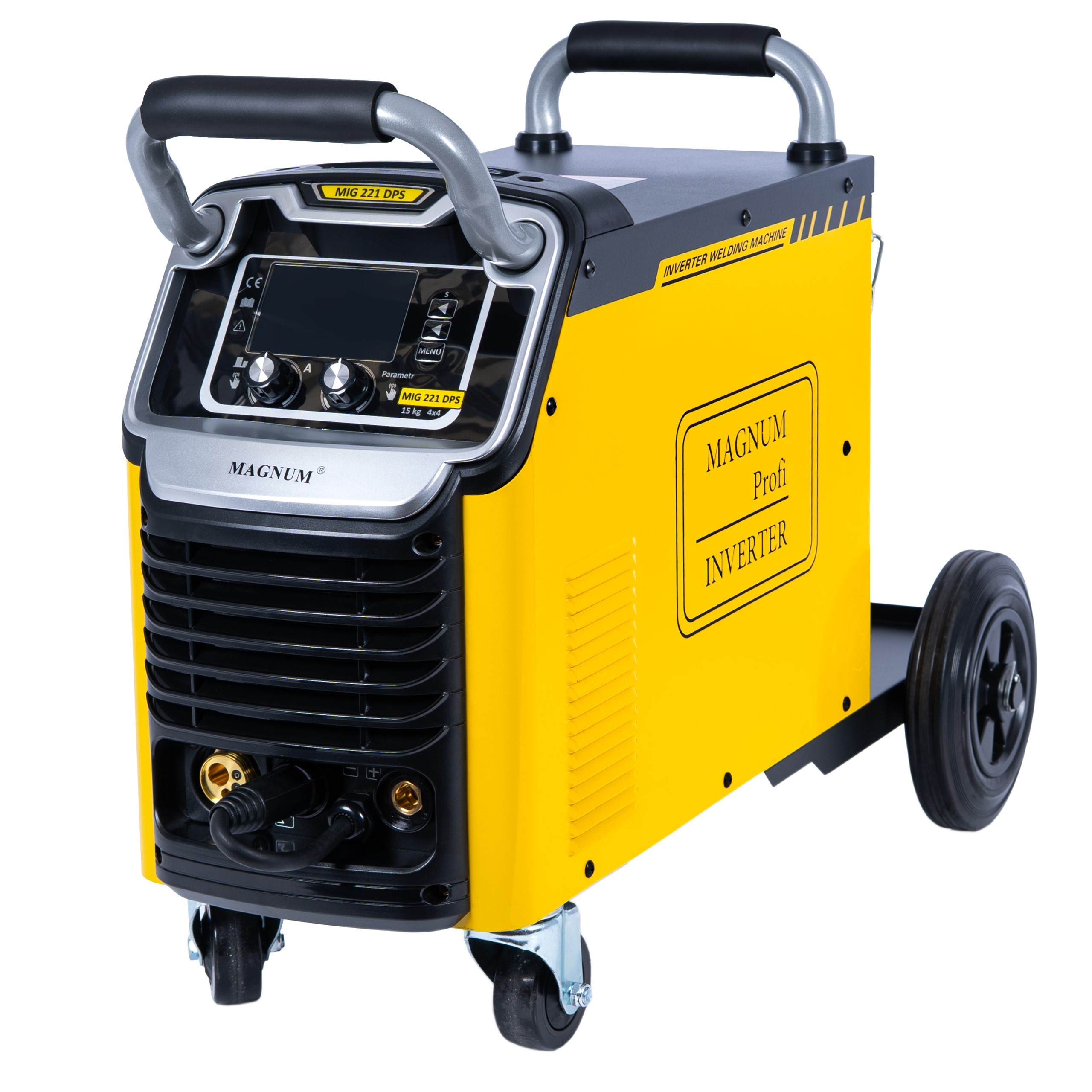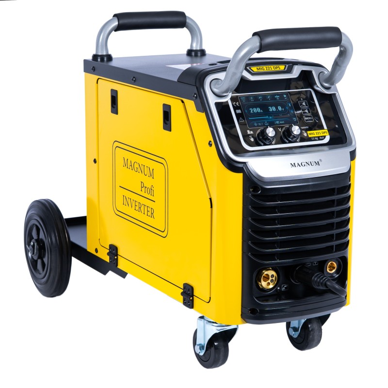 MAGNUM MIG 221 DPS 4X4 łączy w sobie precyzję technologii impulsowej, wygodę automatycznych ustawień i niezawodność urządzenia przemysłowego.