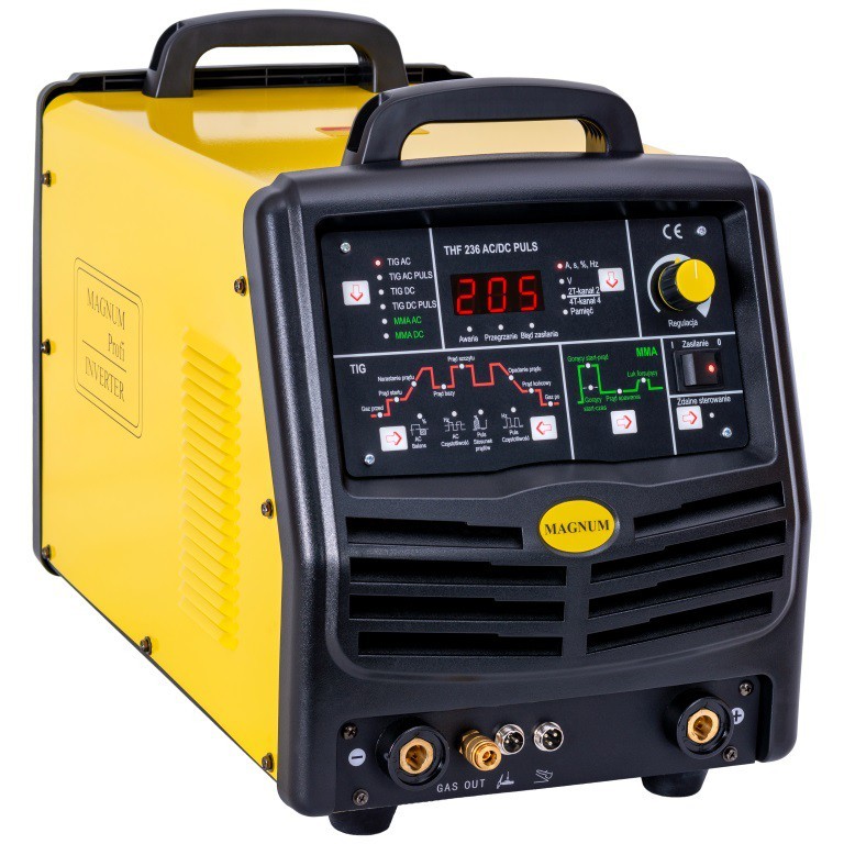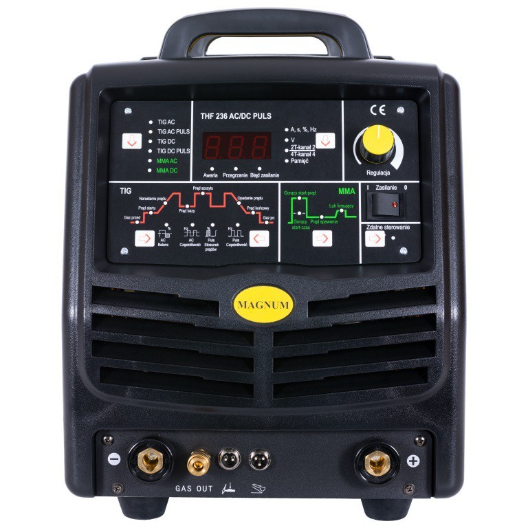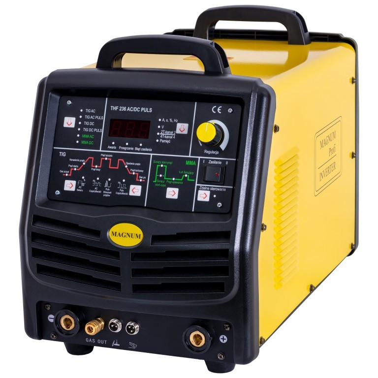 Urządzenie THF 236 AC/DC PULS marki MAGNUM jest profesjonalną spawarką inwertorową przeznaczoną do spawania metodą TIG HF (z bezstykowym zajarzaniem łuku spawalniczego) prądem przemiennym AC oraz stałym DC. THF 236 zapewnia doskonałą wydajność w spawaniu aluminium i jego stopów, stali niestopowej, niskostopowej, wysokostopowej, tytanu oraz innych spawalnych metali i stopów. Urządzeniem można również spawać metodą MMA z wykorzystaniem topliwych elektrod otulonych (rutylowych, rutylowo-celulozowych, zasadowych, kwaśnych).