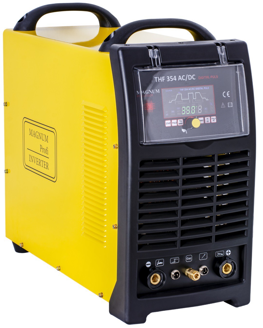 Urządzenie THF354 AC/DC PULS marki MAGNUM jest profesjonalną spawarką inwertorową przeznaczoną do spawania metodą TIG HF (z bezstykowym zajarzaniem łuku spawalniczego) prądem przemiennym AC oraz stałym DC. THF 354 zapewnia doskonałą wydajność w spawaniu aluminium i jego stopów, stali niestopowej, niskostopowej, wysokostopowej, tytanu oraz innych spawalnych metali i stopów. Urządzeniem można również spawać metodą MMA z wykorzystaniem topliwych elektrod otulonych.