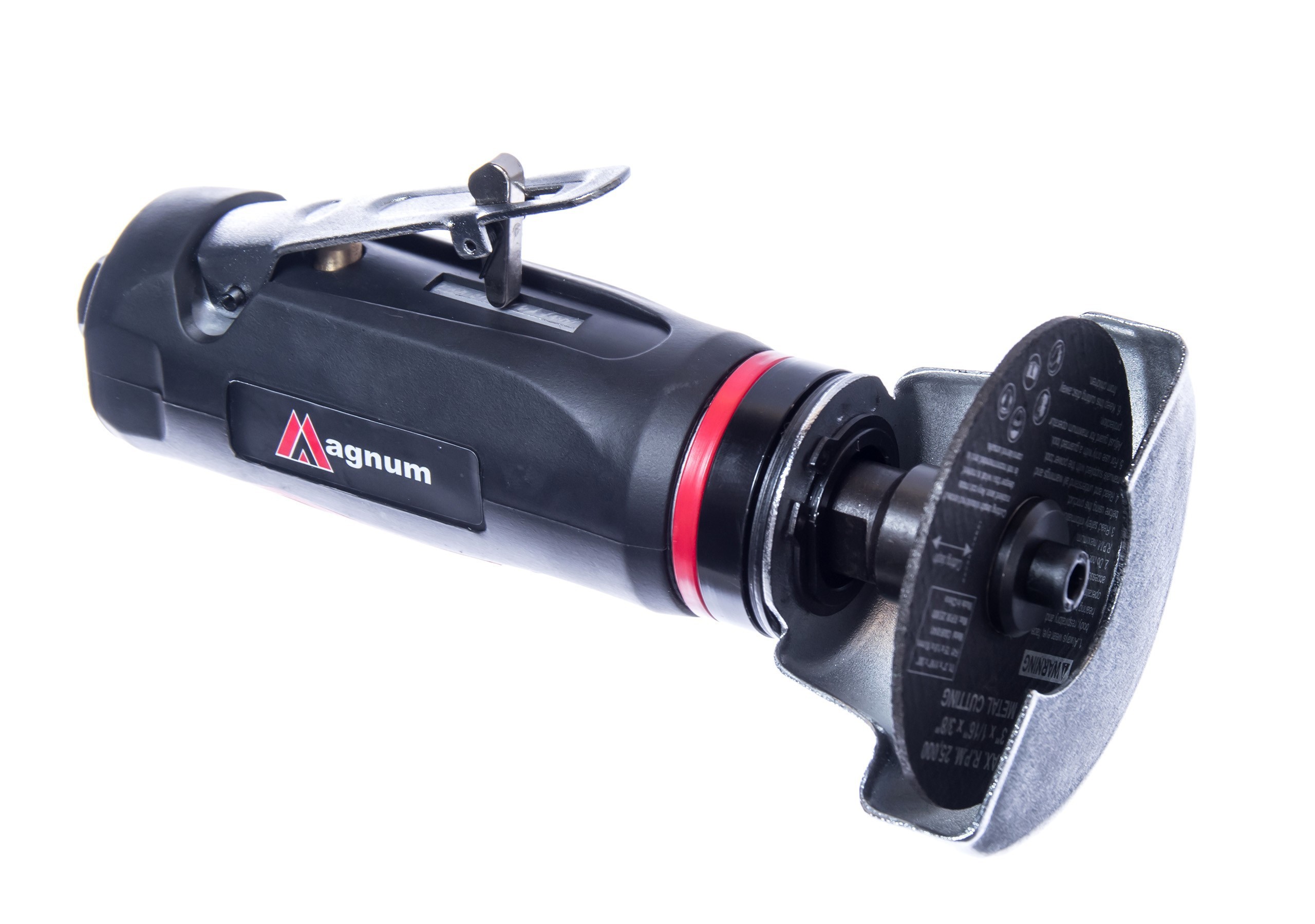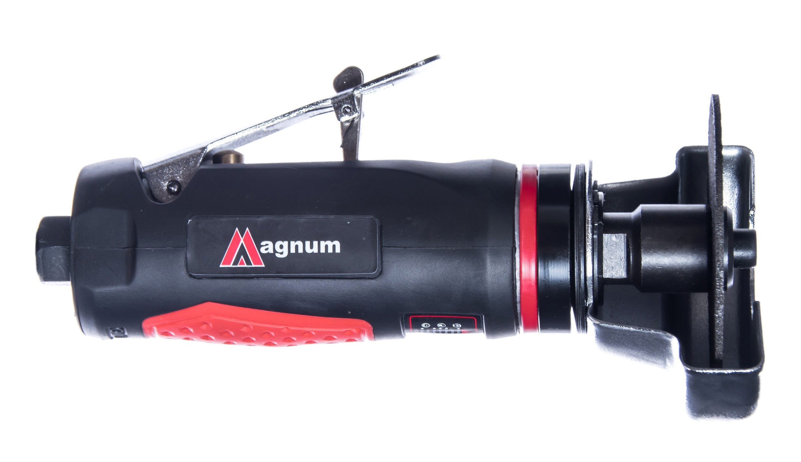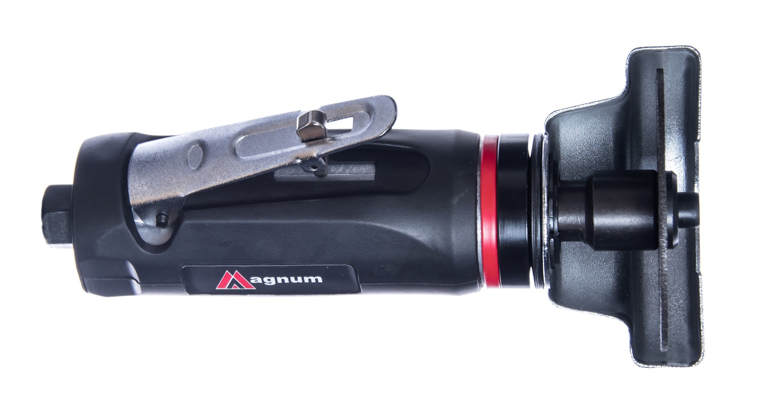 Pneumatyczna szlifierka boczna marki MAGNUM, to profesjonalne narzędzie do cięcia i szlifowania materiałów w trudno dostępnych miejscach. Rękojeść pokryta gumą zapobiega ślizganiu się narzędzia. Regulowana, metalowa osłona chroni przed opiłkami, a bezpieczny spust z zabezpieczeniem zapobiega przypadkowemu uruchomieniu.