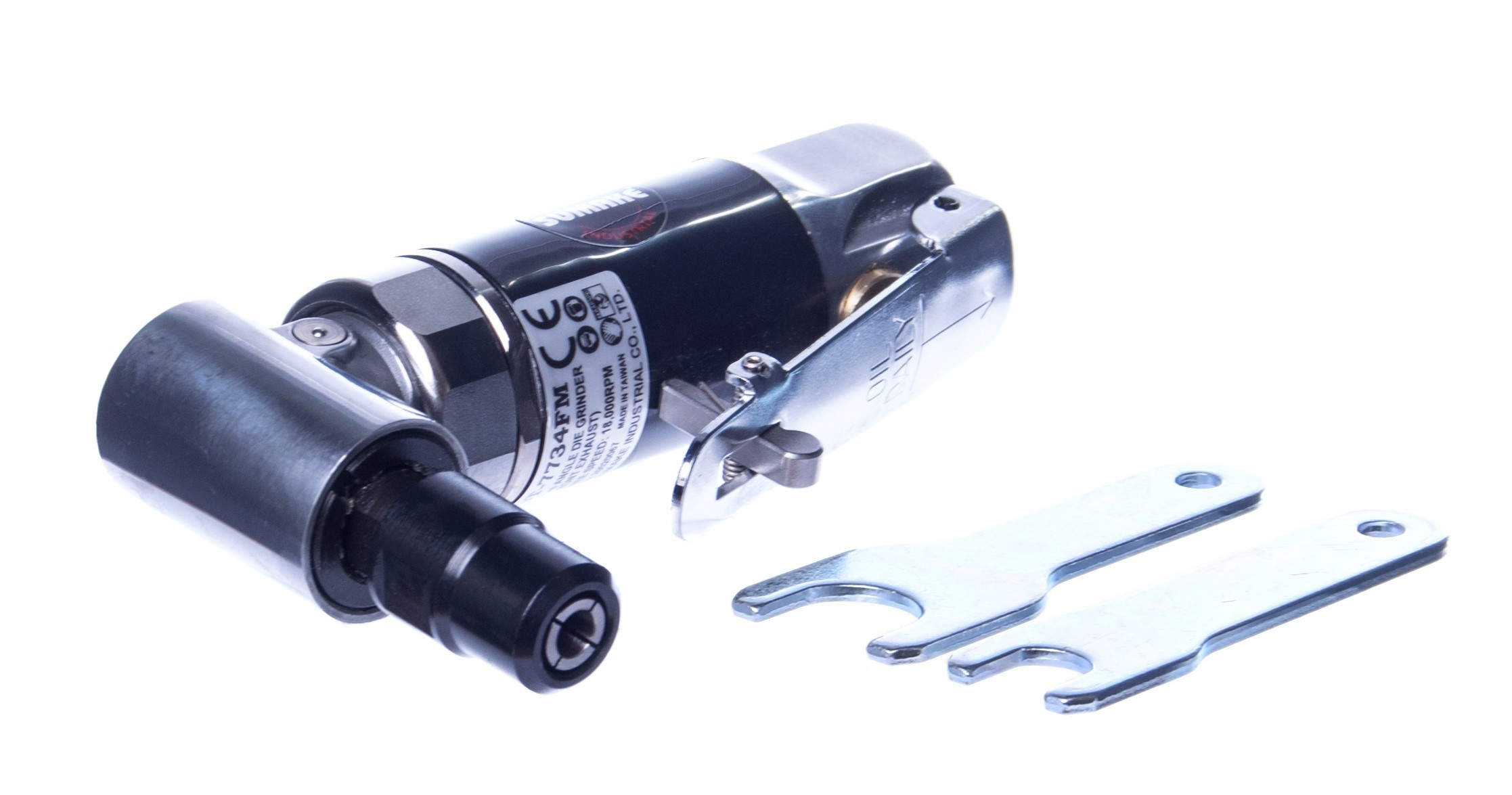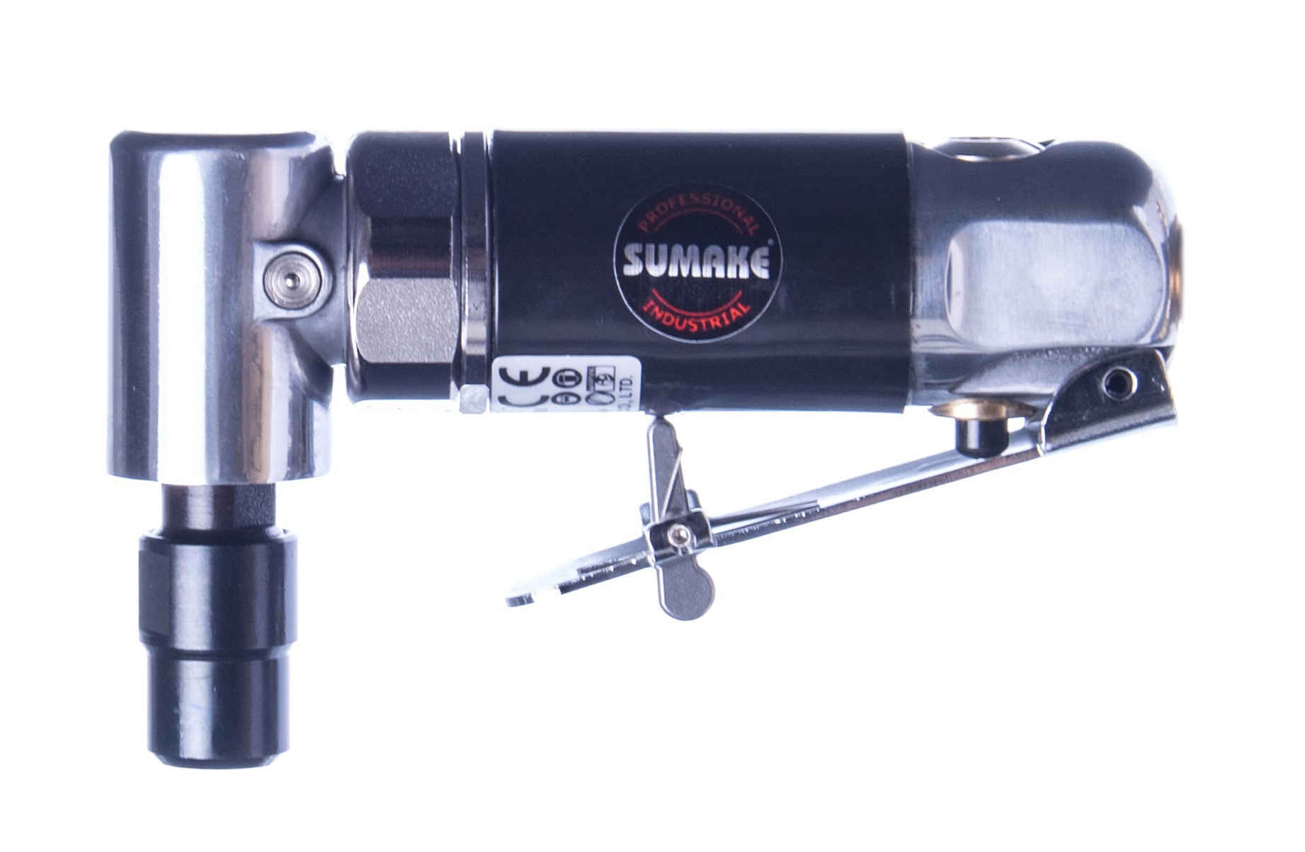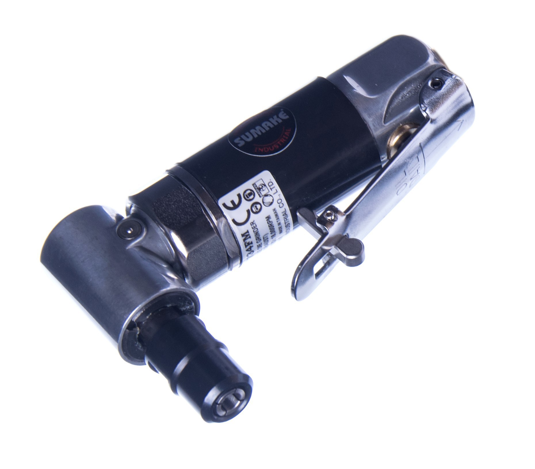 Profesjonalna kątowa szlifierka trzpieniowa SUMAKE.. Niezastąpione narzędzie dla każdego spawacza, ślusarza, mechanika czy serwisanta. Może współpracować z kamieniami i frezami palcowymi (pilnikami) o średnicy 6 mm. Lekka i ergonomiczne wyprofilowana. Spust wyposażony w blokadę zabezpieczającą przed przypadkowym uruchomieniem. Niewielkie zapotrzebowanie na powietrze pozwalają na współpracę nawet z małym kompresorem.