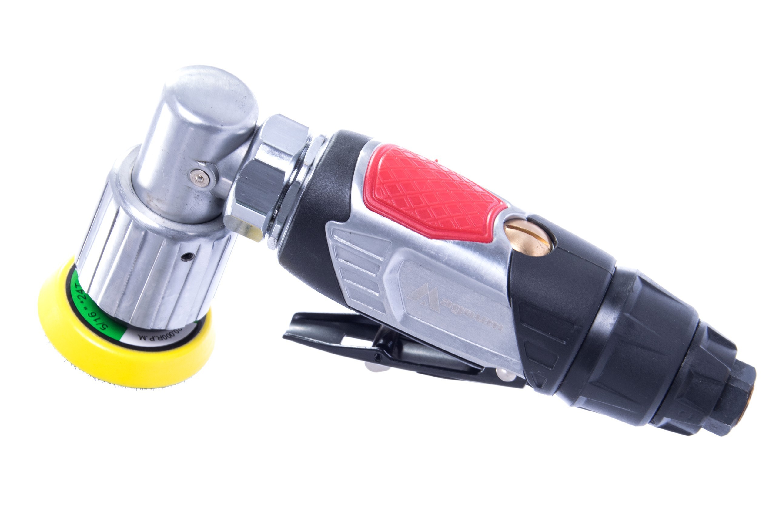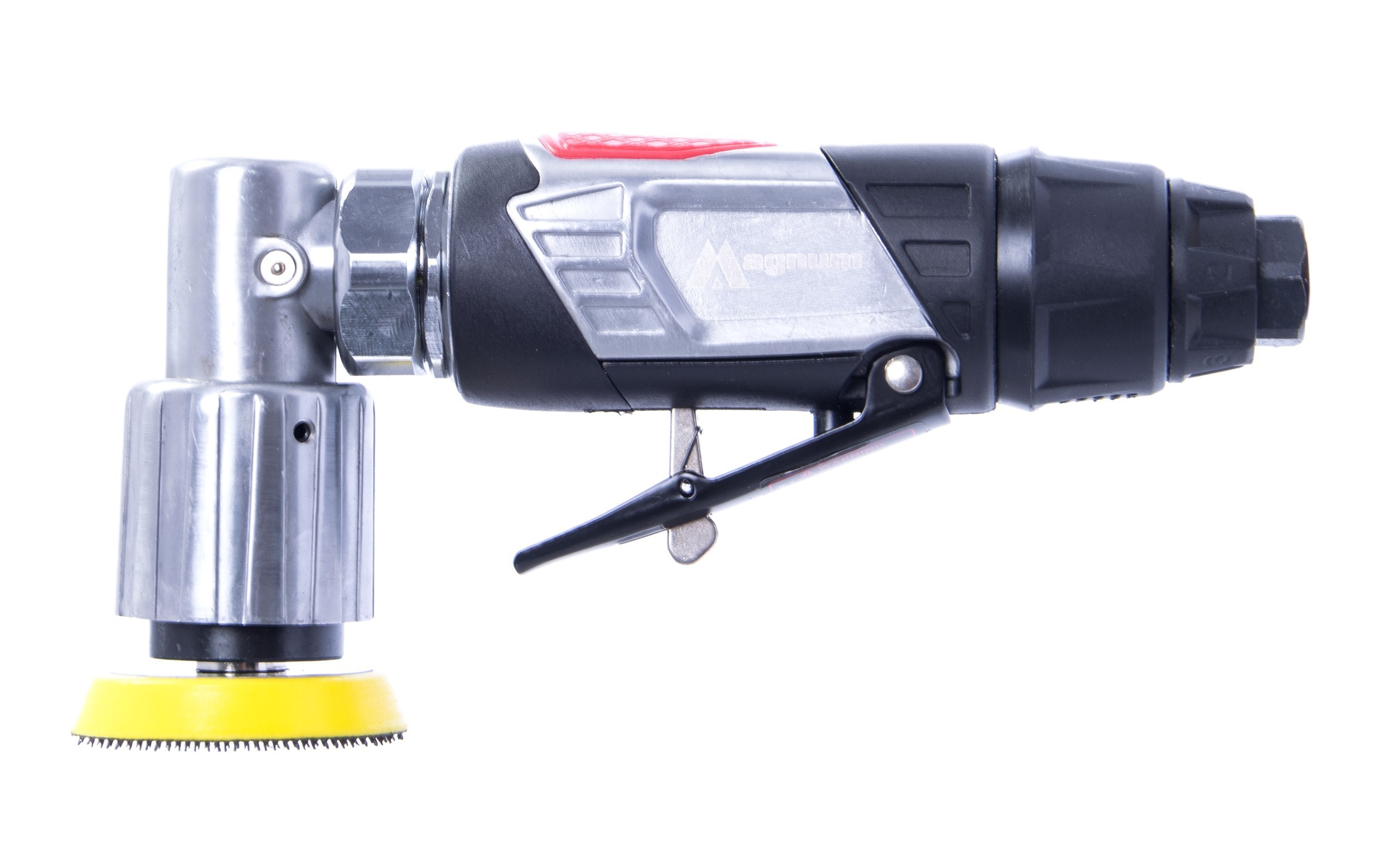 Pneumatyczna szlifierka oscylacyjna mimośrodowa marki MAGNUM. Spust wyposażony w blokadę zabezpieczającą przed przypadkowym uruchomieniem. Posiada 4 stopnie regulacji prędkości. Wylot powietrza umieszczony z tyłu urządzenia posiada możliwość ukierunkowania strumienia powietrza w dowolną stronę. W zestawie dodatkowo tarcza o średnicy 50 mm na rzep i klucz serwisowy.
