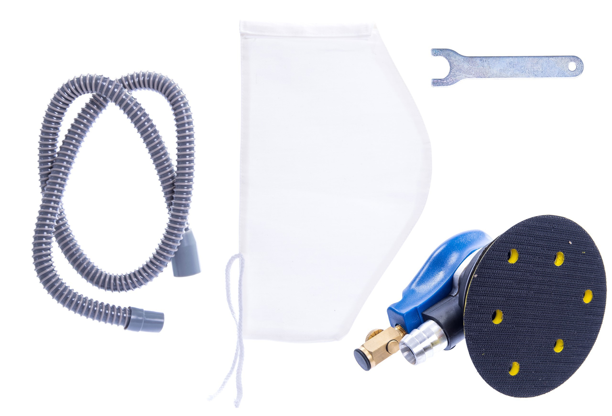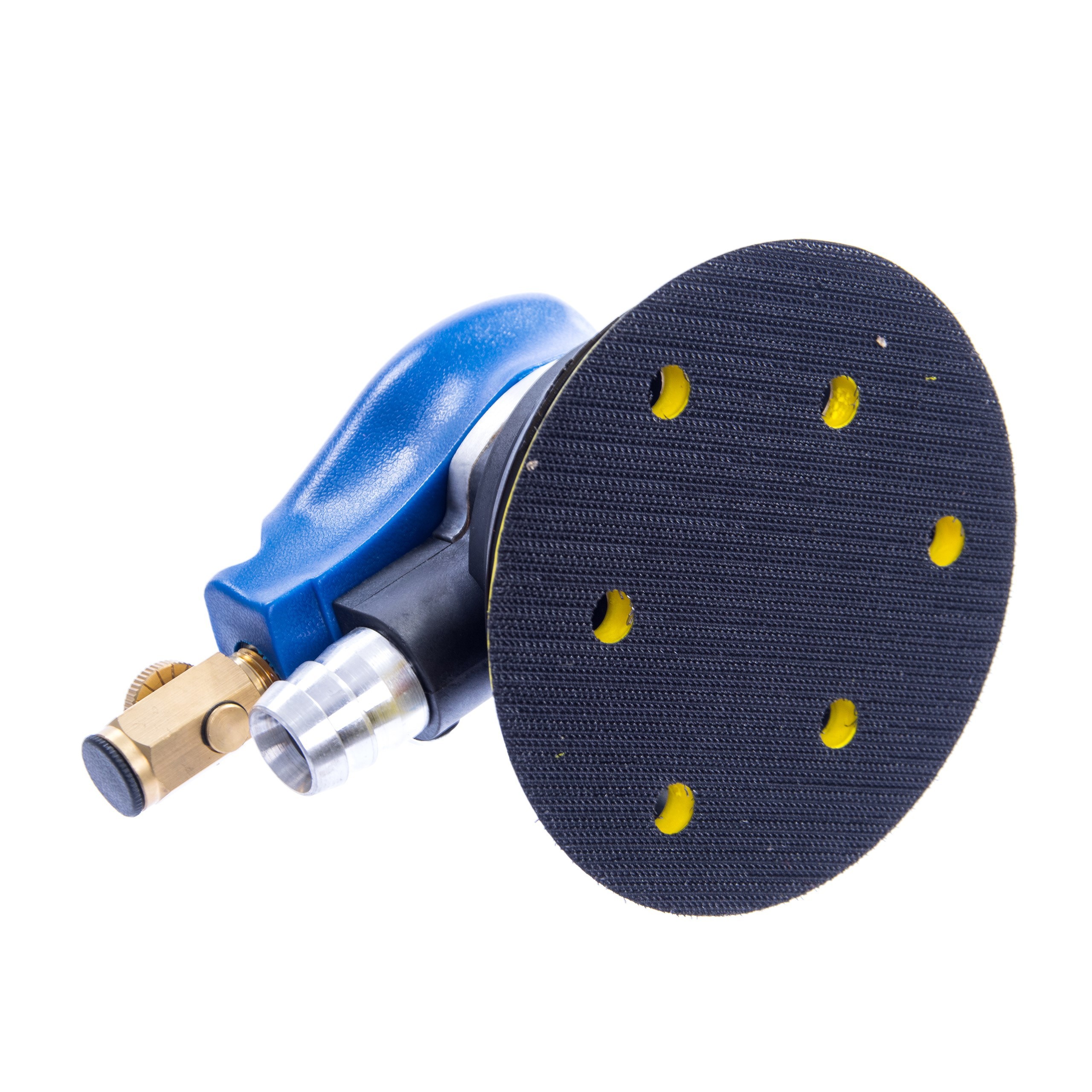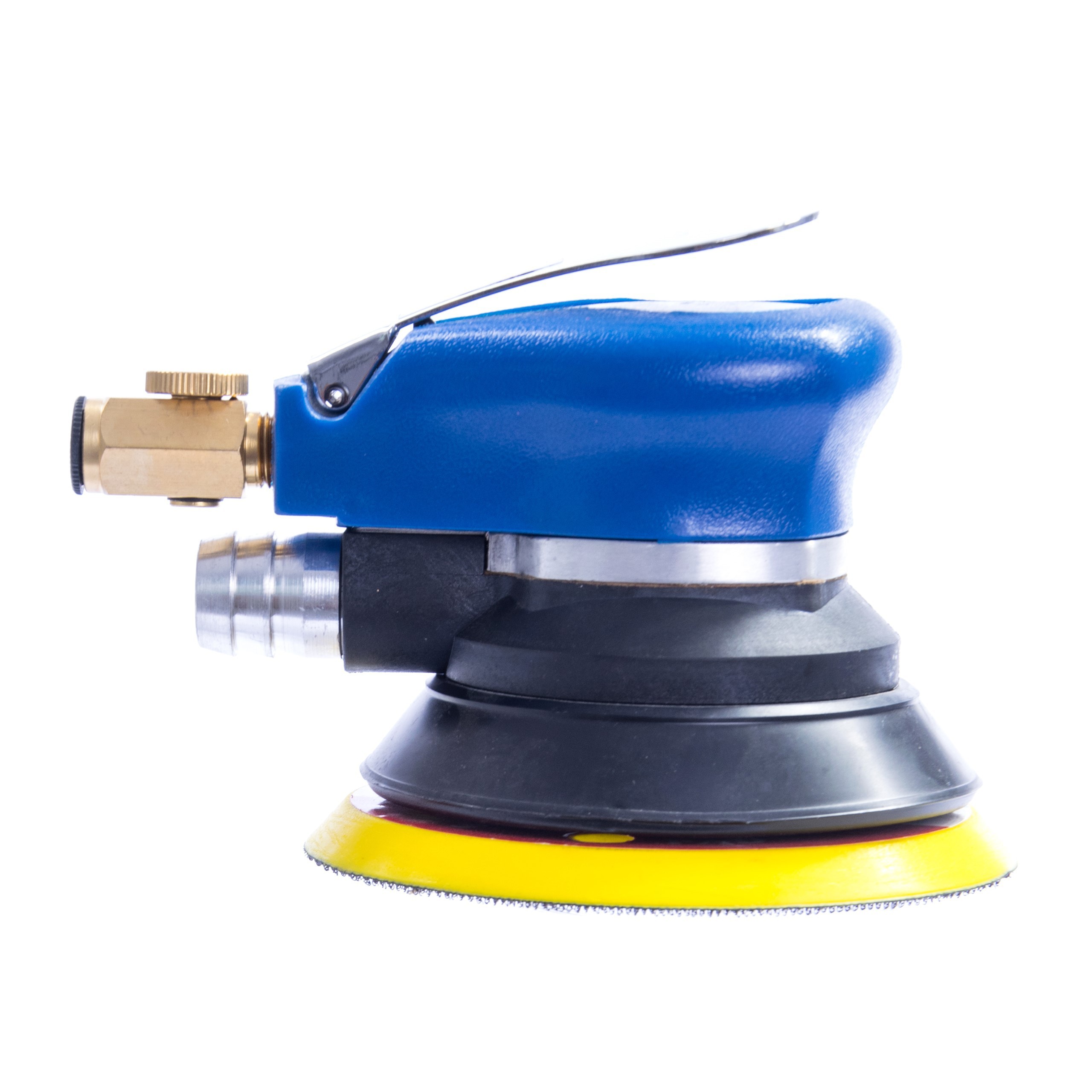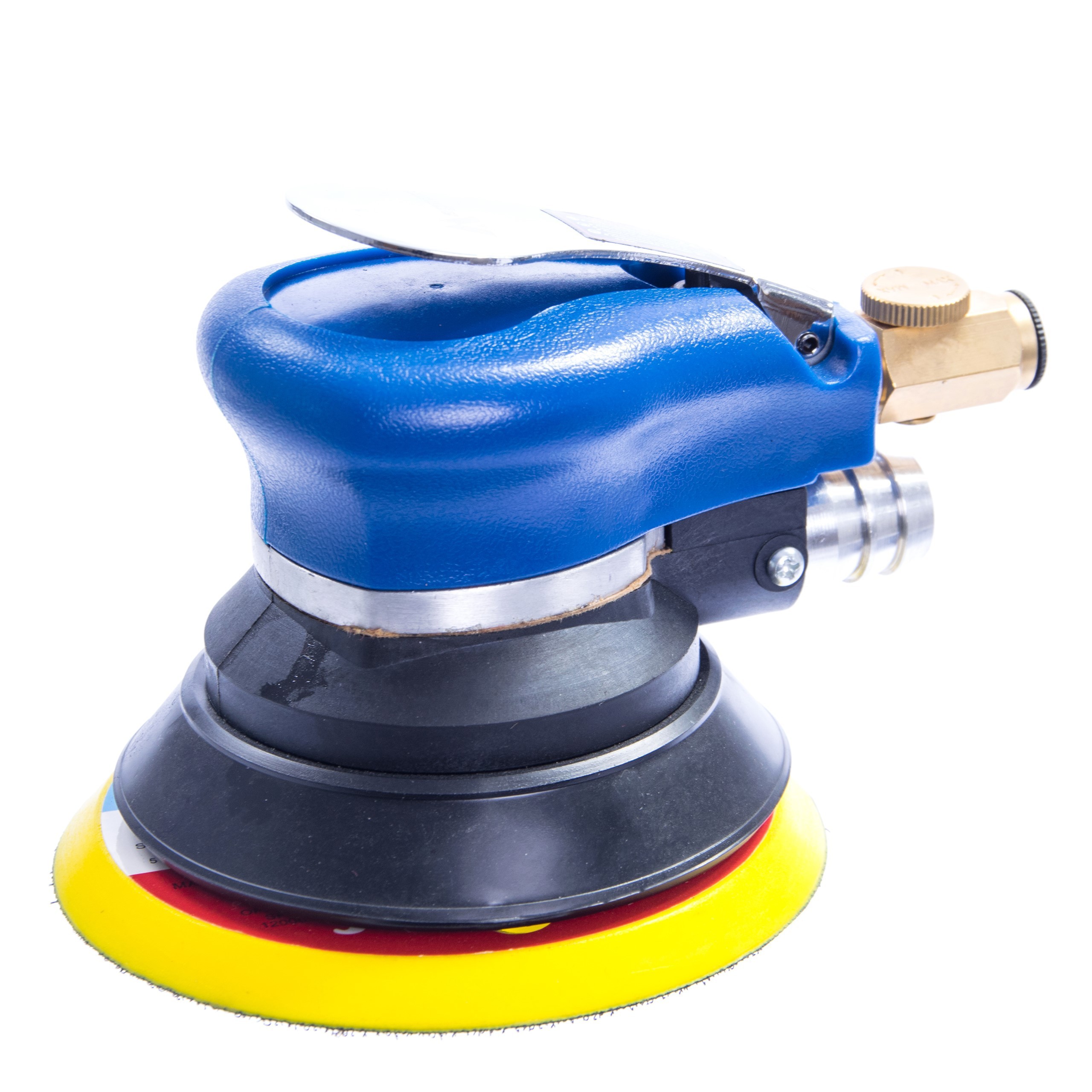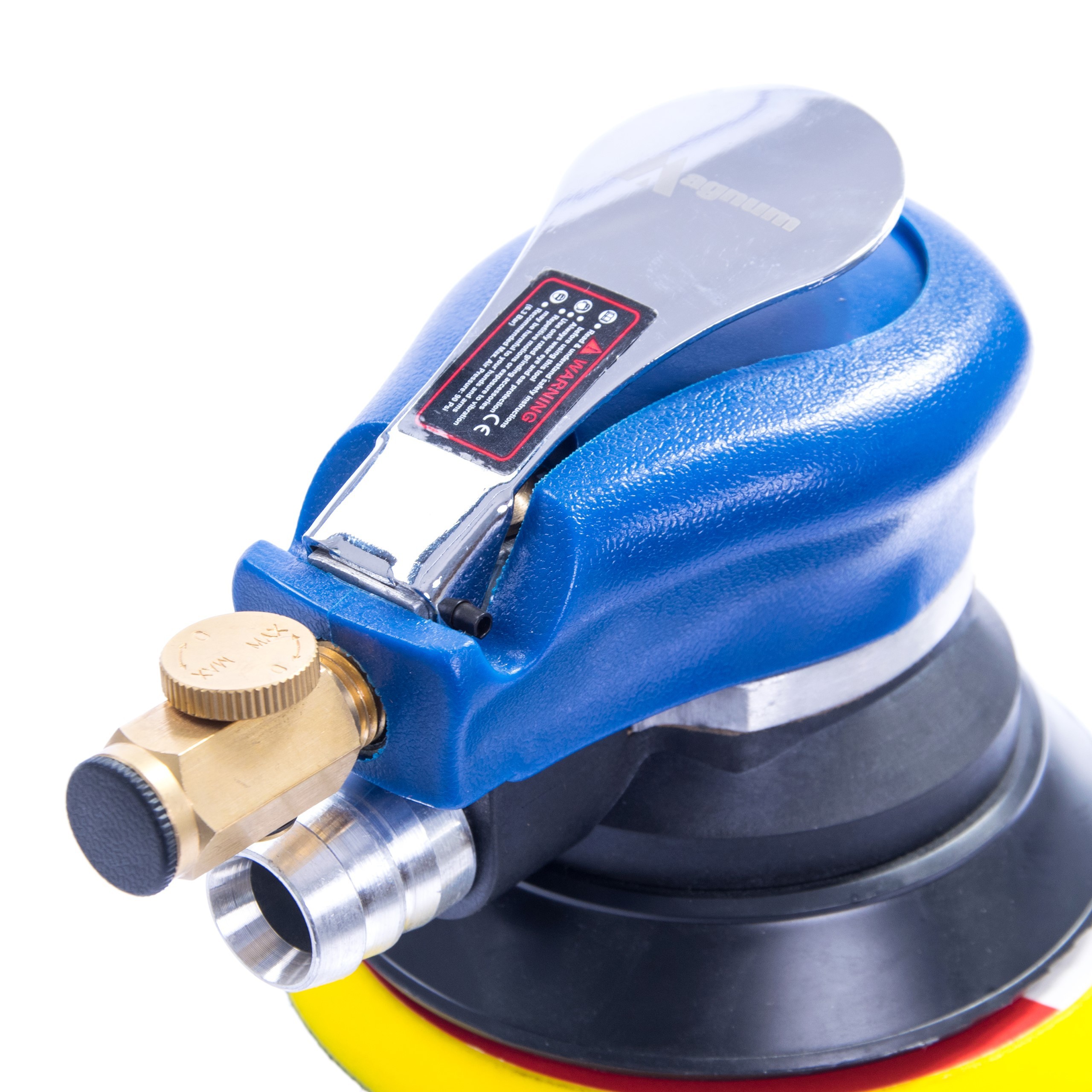 Pneumatyczna szlifierka marki MAGNUM. Szlifierka mimośrodowa znajduje zastosowanie zarówno w przemyśle jak i wszelkiego rodzaju warsztatach zajmujących się przygotowaniem powierzchni. Mimośrodowy ruch tarczy o skoku 5 mm gwarantuje równomierną i precyzyjną obróbkę powierzchni. Ergonomiczny kształt uchwytu oraz dźwigni włączającej zapewnia pełną swobodę operowania szlifierką. Tarcza posiada otwory które umożliwiają zastosowanie odciągu co wpływa na porządek podczas wykonywanej pracy.