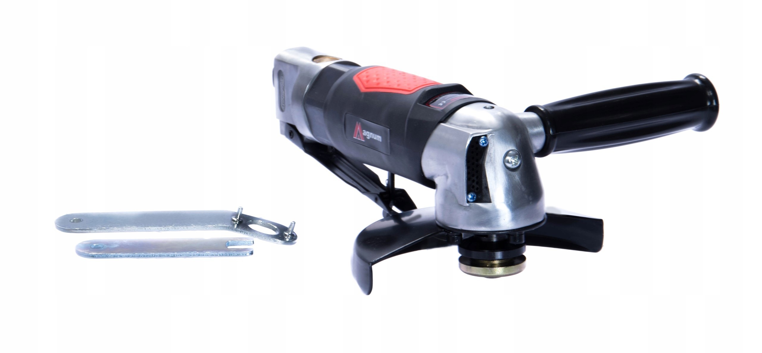 Pneumatyczna szlifierka kątowa marki MAGNUM. Klucze do odkręcania tarczy w zestawie. Niezastąpione narzędzie dla każdego spawacza, ślusarza, mechanika czy serwisanta.
