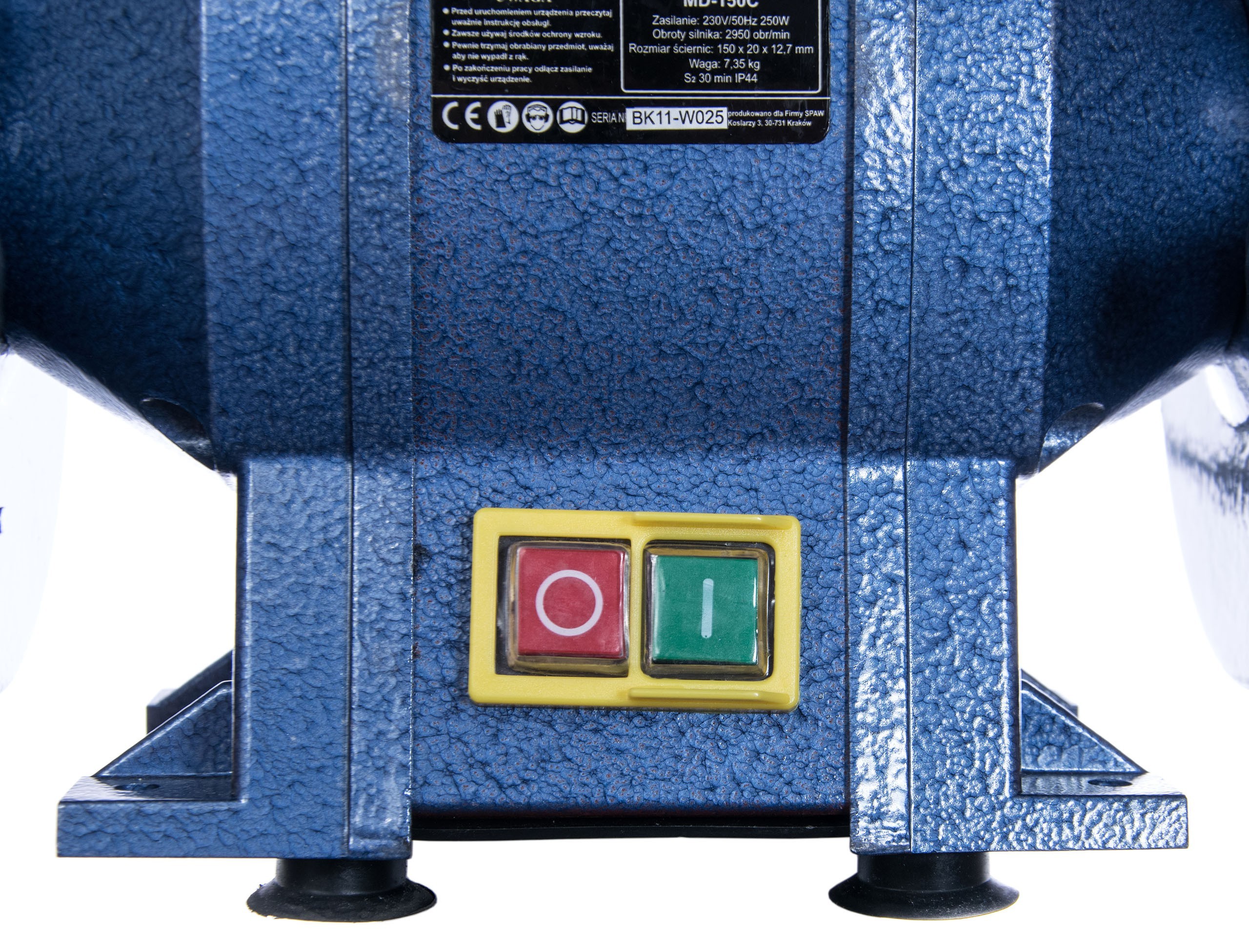 Szlifierka stołowa dwutarczowa marki MAGNUM, to podstawowe wyposażenie zakładów, warsztatów oraz przydomowego garażu. Urządzenie zostało wykonane z solidnych komponentów, dzięki czemu dostosowane jest do pracy w trudnych warunkach i odporne na uszkodzenia. Dzięki dobremu wyważeniu i stopkom gumowym urządzenie nie generuje nadmiernych wibracji oraz hałasu co ułatwia użytkowanie. Włącznik hermetycznie zabezpieczony przed zabrudzeniem oraz zapyleniem, co mogłoby skutkować awarią urządzenia.