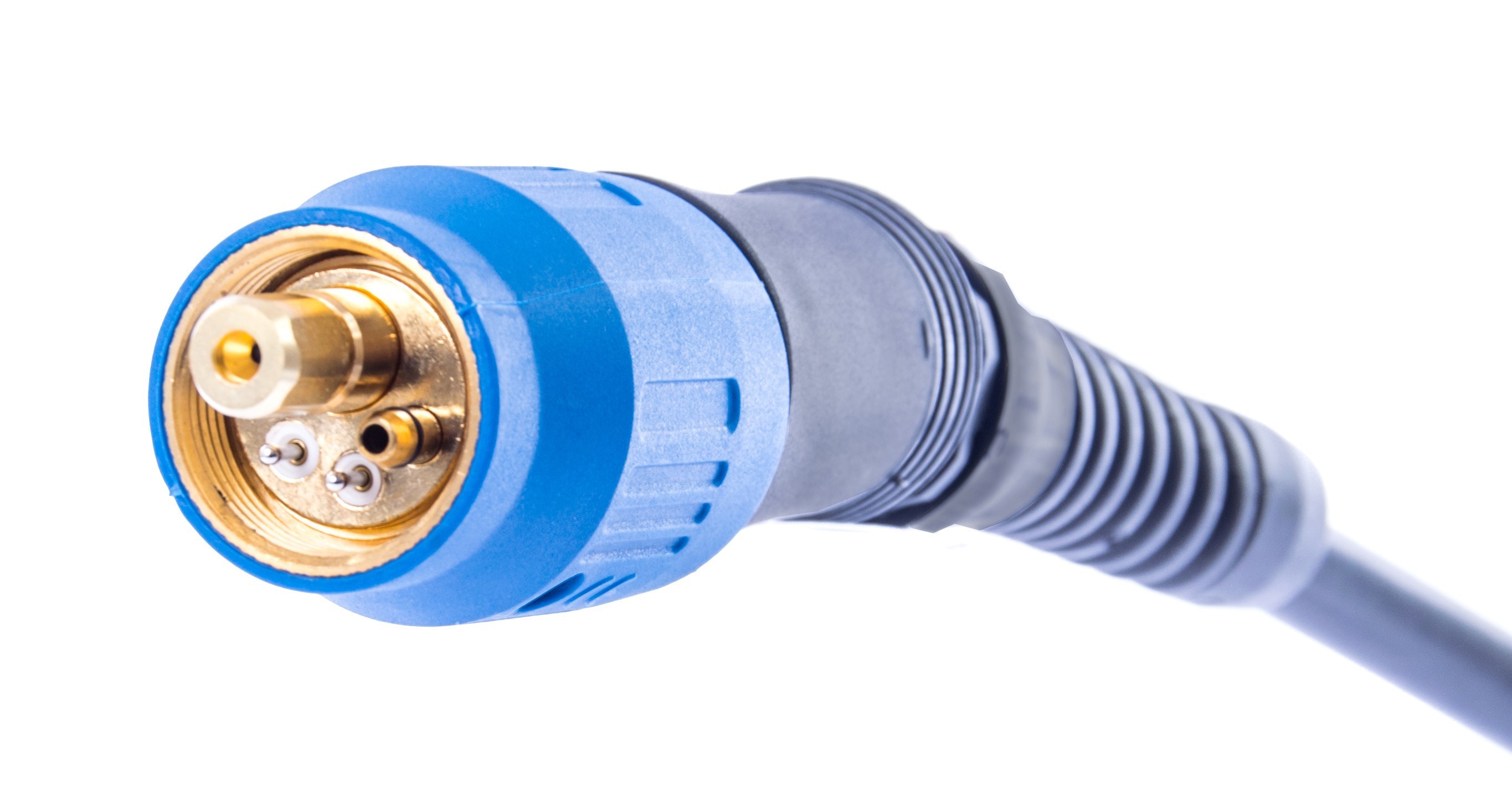 Uchwyt zakończony jest znormalizowanym przyłączem typu EURO, pasującym do większości półautomatów spawalniczych.