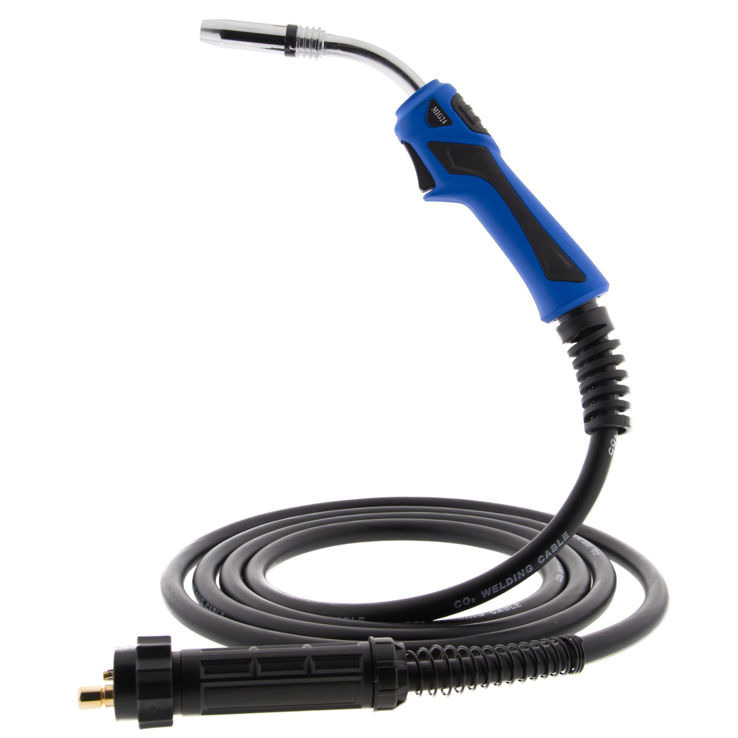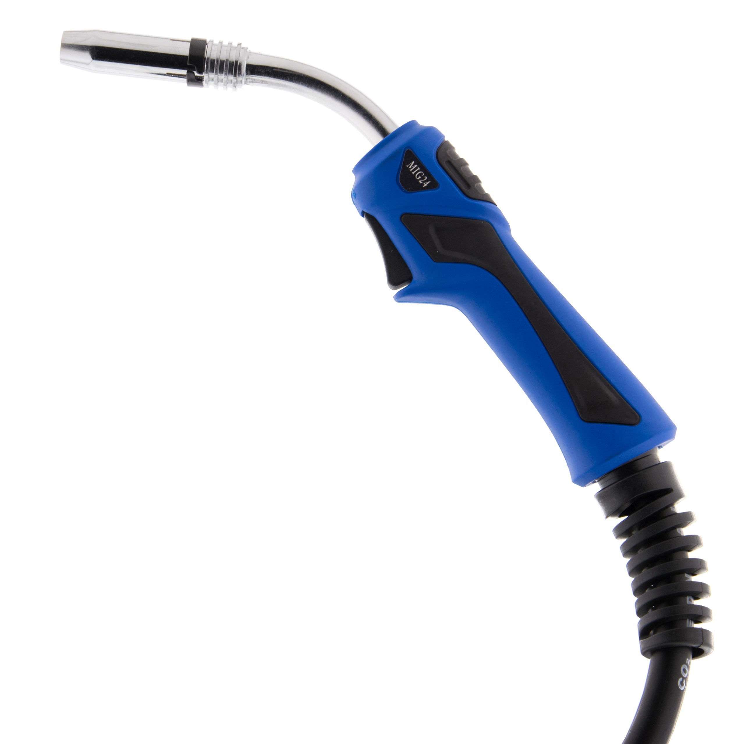 Uchwyt chłodzony jest gazem osłonowym, zakończony znormalizowanym przyłączem typu EURO, pasującym do większości półautomatów spawalniczych.