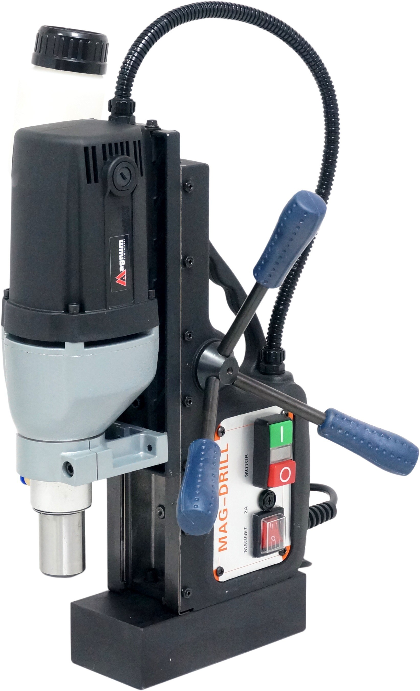 Wiertarka marki MAGNUM ze stopą magnesową, to urządzenie profesjonalne przeznaczone do użytku przemysłowego. Model ten wyposażony jest w standardowy uchwyt Weldon 19 mm, dedykowany do precyzyjnego wiercenia frezami koronkowymi. Niewielka masa, mocny magnes i niewielki gabaryt to cechy wyróżniające wiertarkę MAGNUM spośród podobnych urządzeń. Wiertarka zapakowana jest w walizkę ułatwiającą transport i przechowywanie.