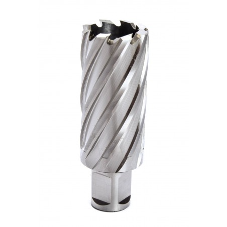 Wiertło trepanacyjne, rurowe z stali szybkotnącej HSS przeznaczone do wiercenia otworów w pełnej stali do głębokości 50 mm. Mocowane w uchwycie Weldon 3/4' (19 mm). Do prawidłowej eksploatacji wiertła zalecane jest zastosowanie pilota prowadzącego oraz chłodzenia.