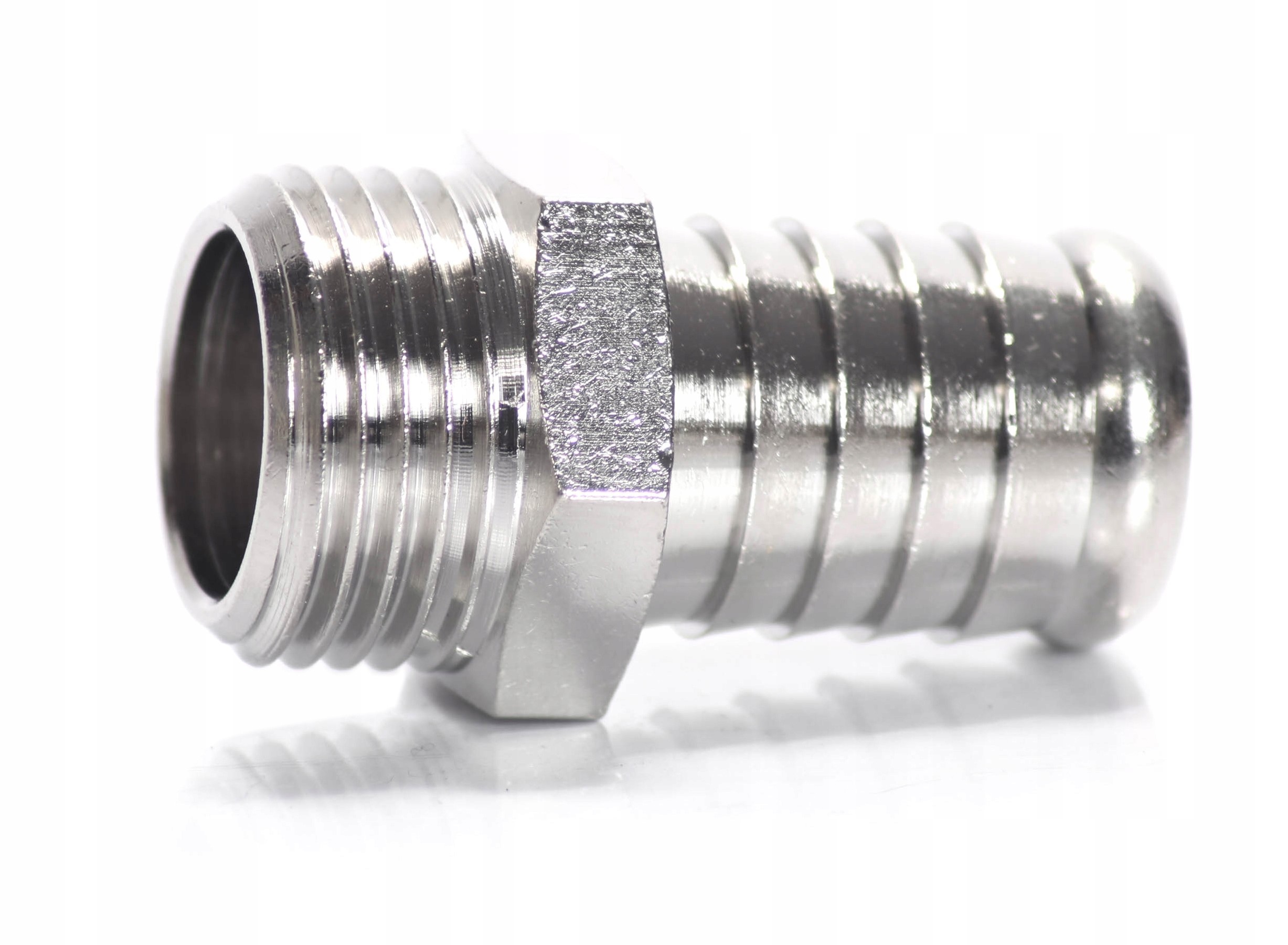 Złączka gwintowana z króćcem na wąż. Końcówka służy do łączenia przewodów z armaturą gwintowaną. Króciec na wąż może posiadać wymiar przekraczający średnicę nominalną przewodu. Ma to na celu ciasne spasowanie węża na złączce, zapobiegające wyciekom.