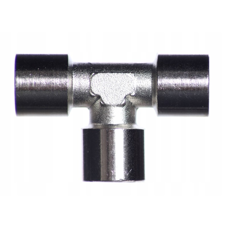 Trójnik gwintowany z mosiądzu niklowanego umożliwia łączenie elementów instalacji pneumatycznych i hydraulicznych. Złączka cechuje się wysoką odpornością na działanie szkodliwych czynników takich jak wilgoć (wysoka odporność na korozję), oleje czy wysoka temperatura. Nadaje się do instalacji pneumatycznych, gazowych, wodnych i ciepłowniczych.