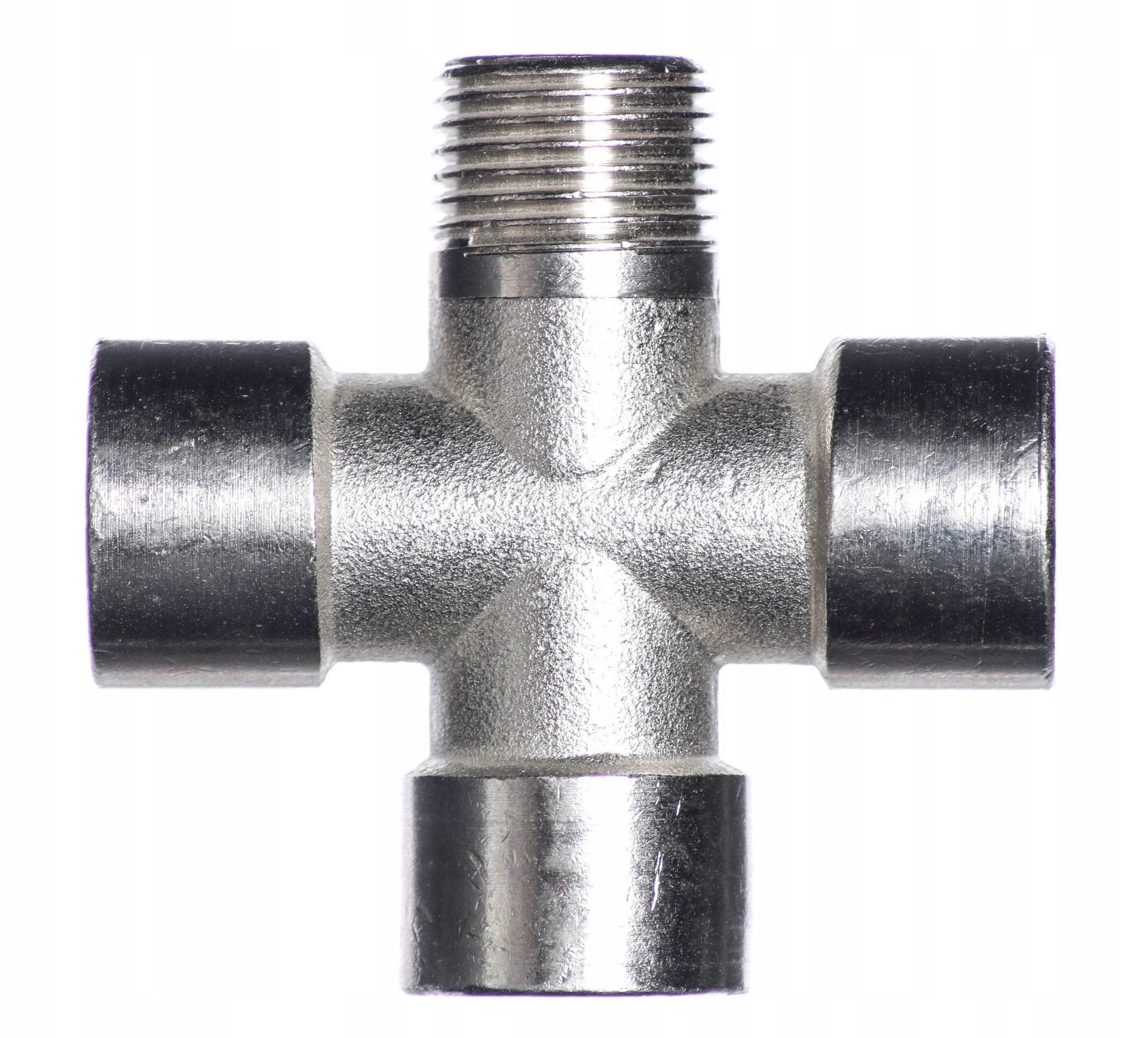 Czwórnik gwintowany z mosiądzu niklowanego umożliwia łączenie elementów instalacji pneumatycznych i hydraulicznych. Złączka cechuje się wysoką odpornością na działanie szkodliwych czynników takich jak wilgoć (wysoka odporność na korozję), oleje czy wysoka temperatura. Nadaje się do instalacji pneumatycznych, gazowych, wodnych i ciepłowniczych.