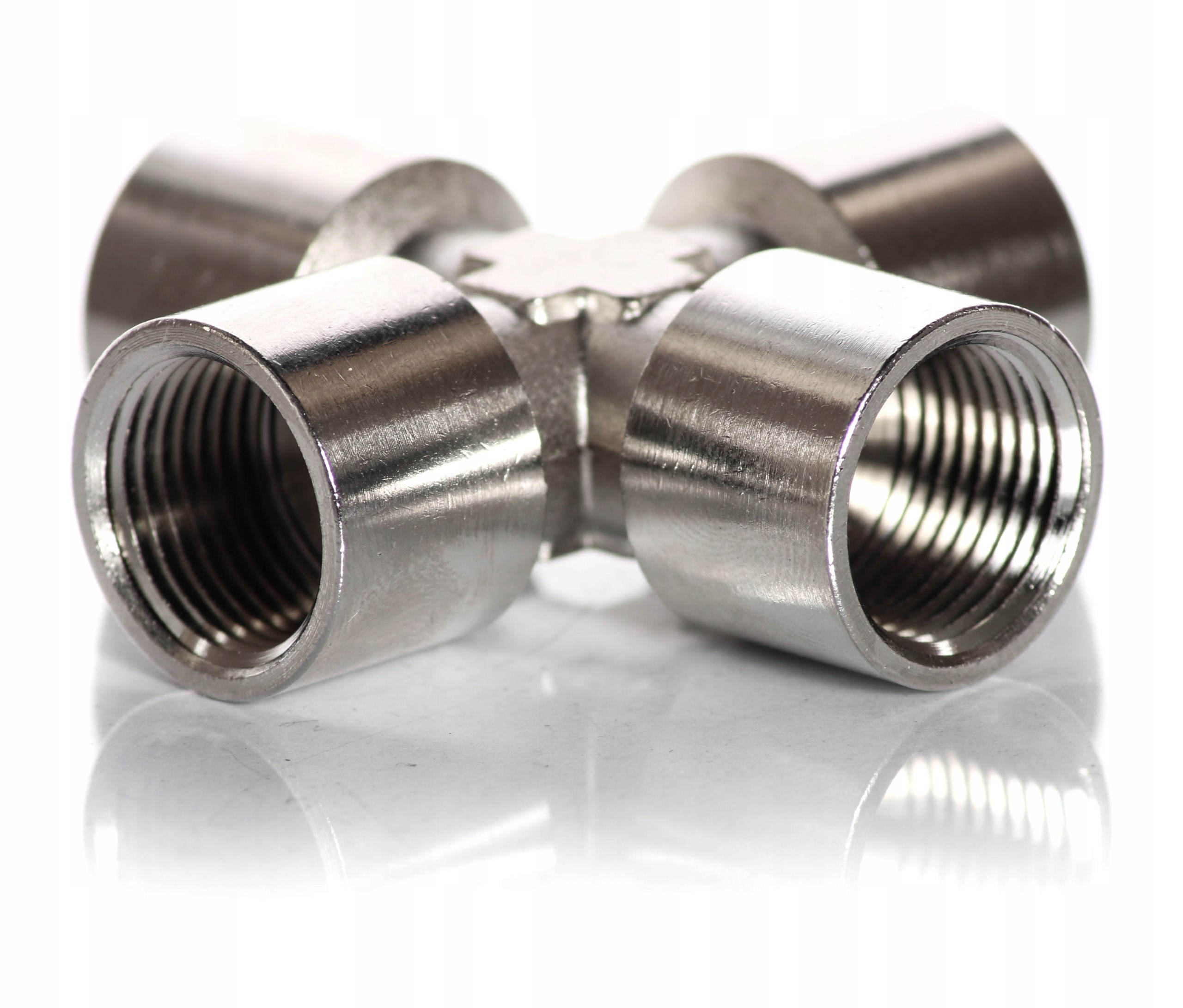 Czwórnik gwintowany z mosiądzu niklowanego umożliwia łączenie elementów instalacji pneumatycznych i hydraulicznych. Złączka cechuje się wysoką odpornością na działanie szkodliwych czynników takich jak wilgoć (wysoka odporność na korozję), oleje czy wysoka temperatura. Nadaje się do instalacji pneumatycznych, gazowych, wodnych i ciepłowniczych.
