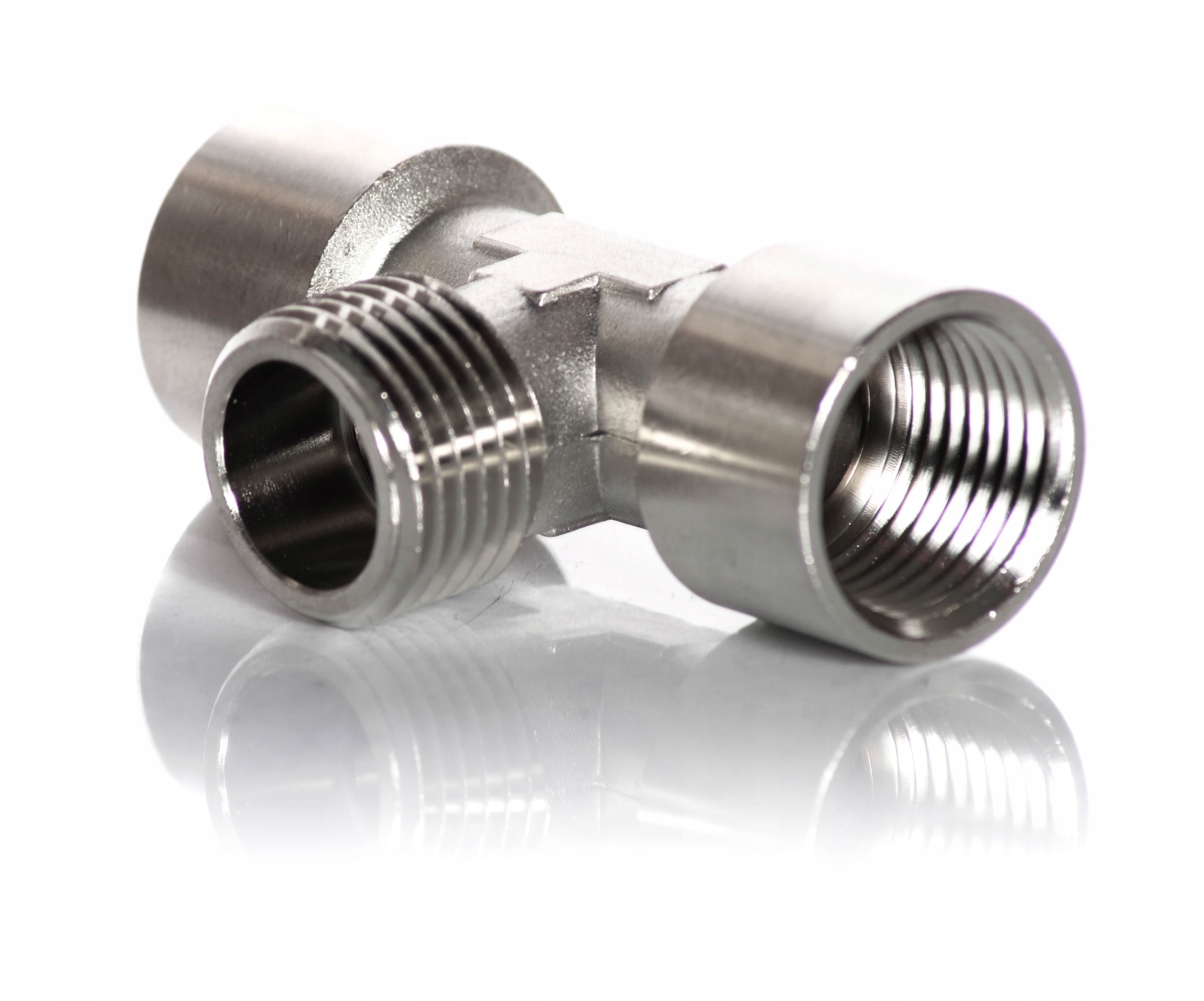 Trójnik gwintowany z mosiądzu niklowanego umożliwia łączenie elementów instalacji pneumatycznych i hydraulicznych. Złączka cechuje się wysoką odpornością na działanie szkodliwych czynników takich jak wilgoć (wysoka odporność na korozję), oleje czy wysoka temperatura. Nadaje się do instalacji pneumatycznych, gazowych, wodnych i ciepłowniczych.