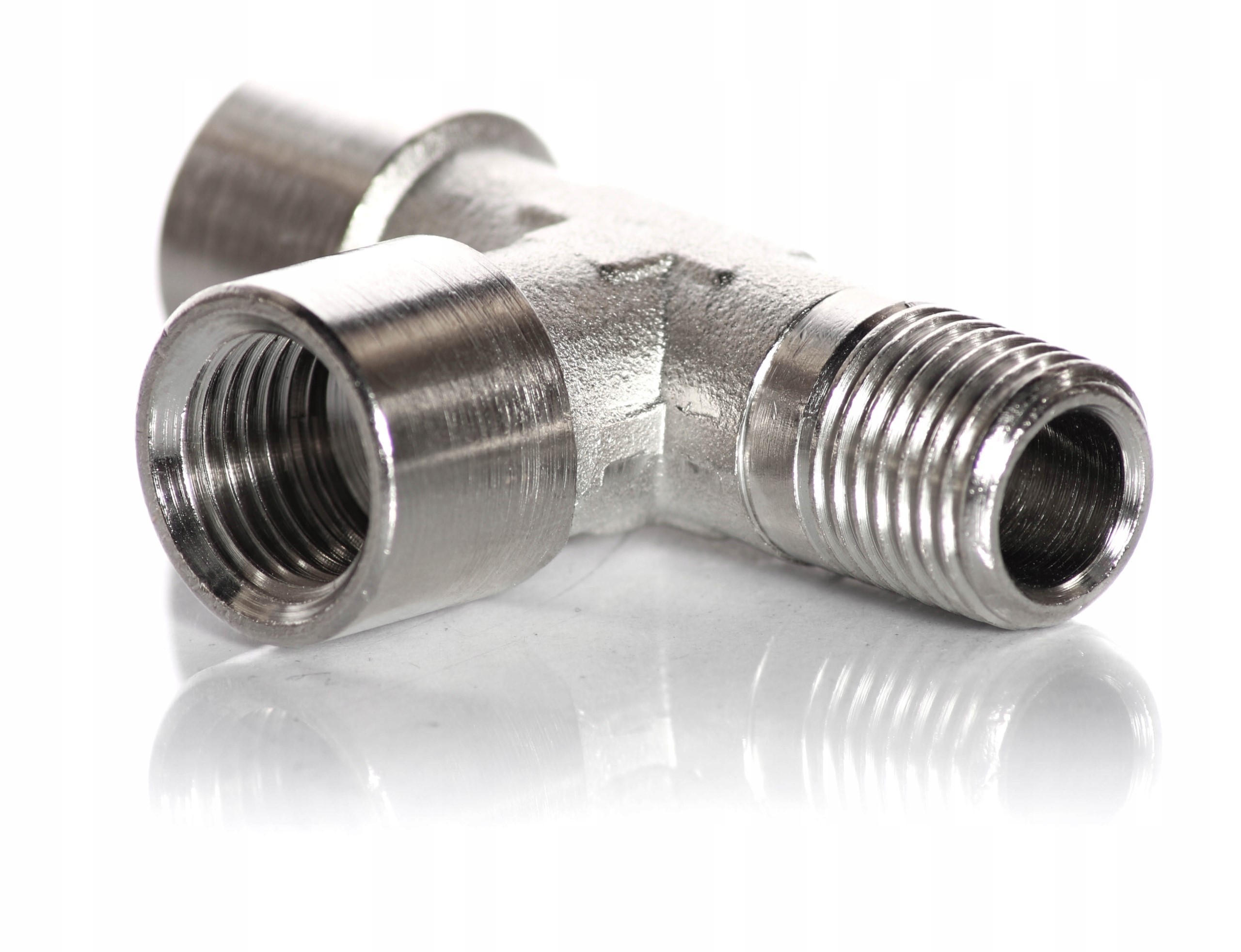 Trójnik gwintowany z mosiądzu niklowanego umożliwia łączenie elementów instalacji pneumatycznych i hydraulicznych. Złączka cechuje się wysoką odpornością na działanie szkodliwych czynników takich jak wilgoć (wysoka odporność na korozję), oleje czy wysoka temperatura. Nadaje się do instalacji pneumatycznych, gazowych, wodnych i ciepłowniczych.
