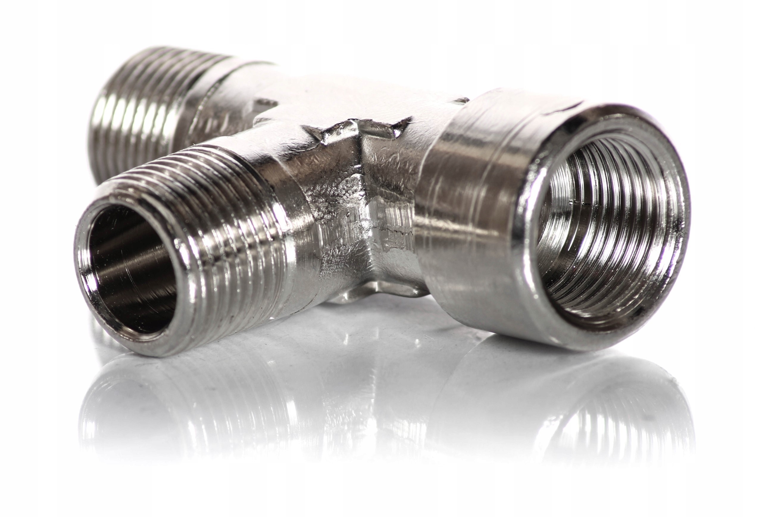 Trójnik gwintowany z mosiądzu niklowanego umożliwia łączenie elementów instalacji pneumatycznych i hydraulicznych. Złączka cechuje się wysoką odpornością na działanie szkodliwych czynników takich jak wilgoć (wysoka odporność na korozję), oleje czy wysoka temperatura. Nadaje się do instalacji pneumatycznych, gazowych, wodnych i ciepłowniczych.