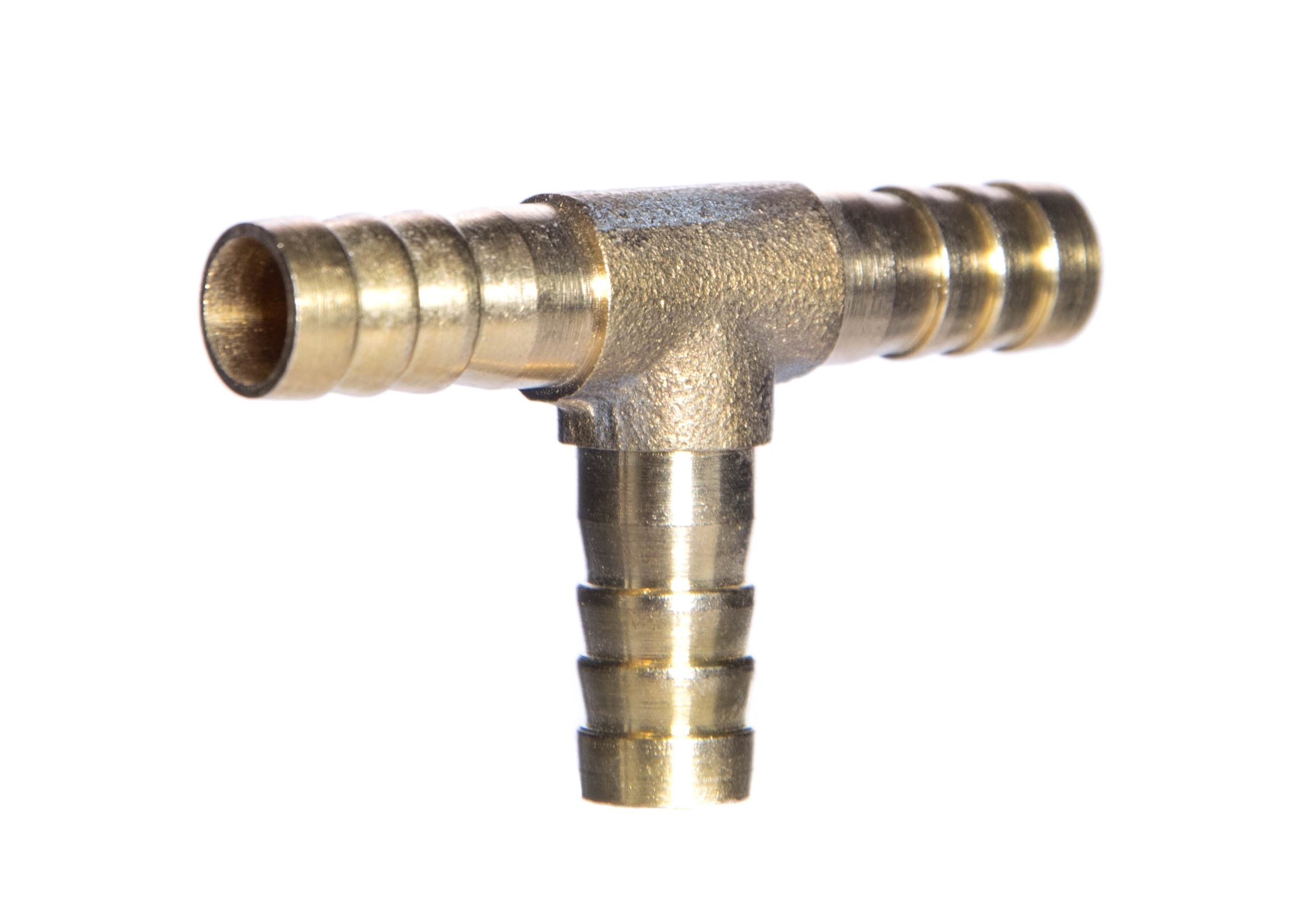 Trójnik na wąż w układzie T, służący do łączenia przewodów w celu rozprowadzenia instalacji pneumatycznej. Łącznik na wąż może posiadać wymiar przekraczający średnicę nominalną przewodu. Ma to na celu ciasne spasowanie węża na złączce, zapobiegające wyciekom.