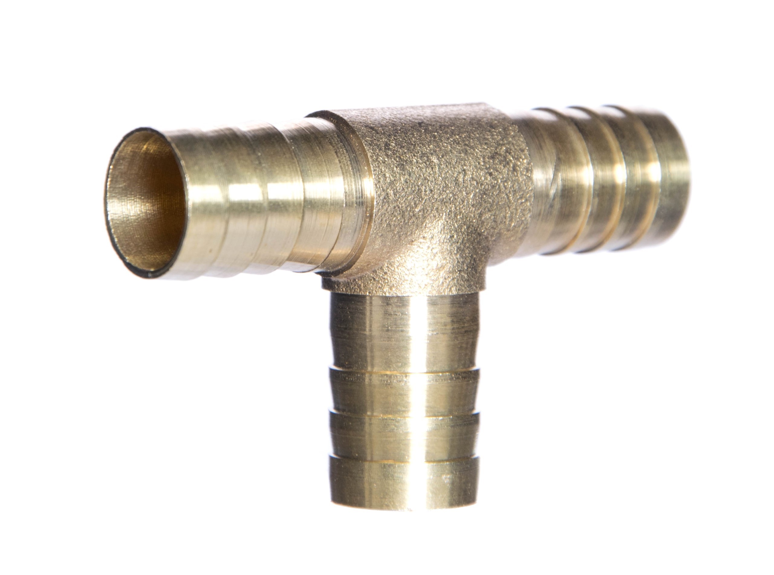 Trójnik na wąż w układzie T, służący do łączenia przewodów w celu rozprowadzenia instalacji pneumatycznej. Łącznik na wąż może posiadać wymiar przekraczający średnicę nominalną przewodu. Ma to na celu ciasne spasowanie węża na złączce, zapobiegające wyciekom.