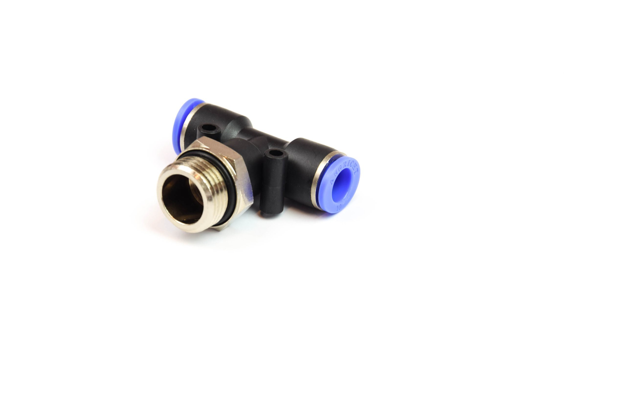 Złączka wtykowa trójnik obrotowy typu T do instalacji pneumatycznych pozwala na proste i szybkie łączenie elementów instalacji pneumatycznych. Połączenie pomiędzy częścią metalową, a korpusem z tworzywa pozwala na wykonanie obrotu w celu odpowiedniego ułożenia kierunku przewodu.