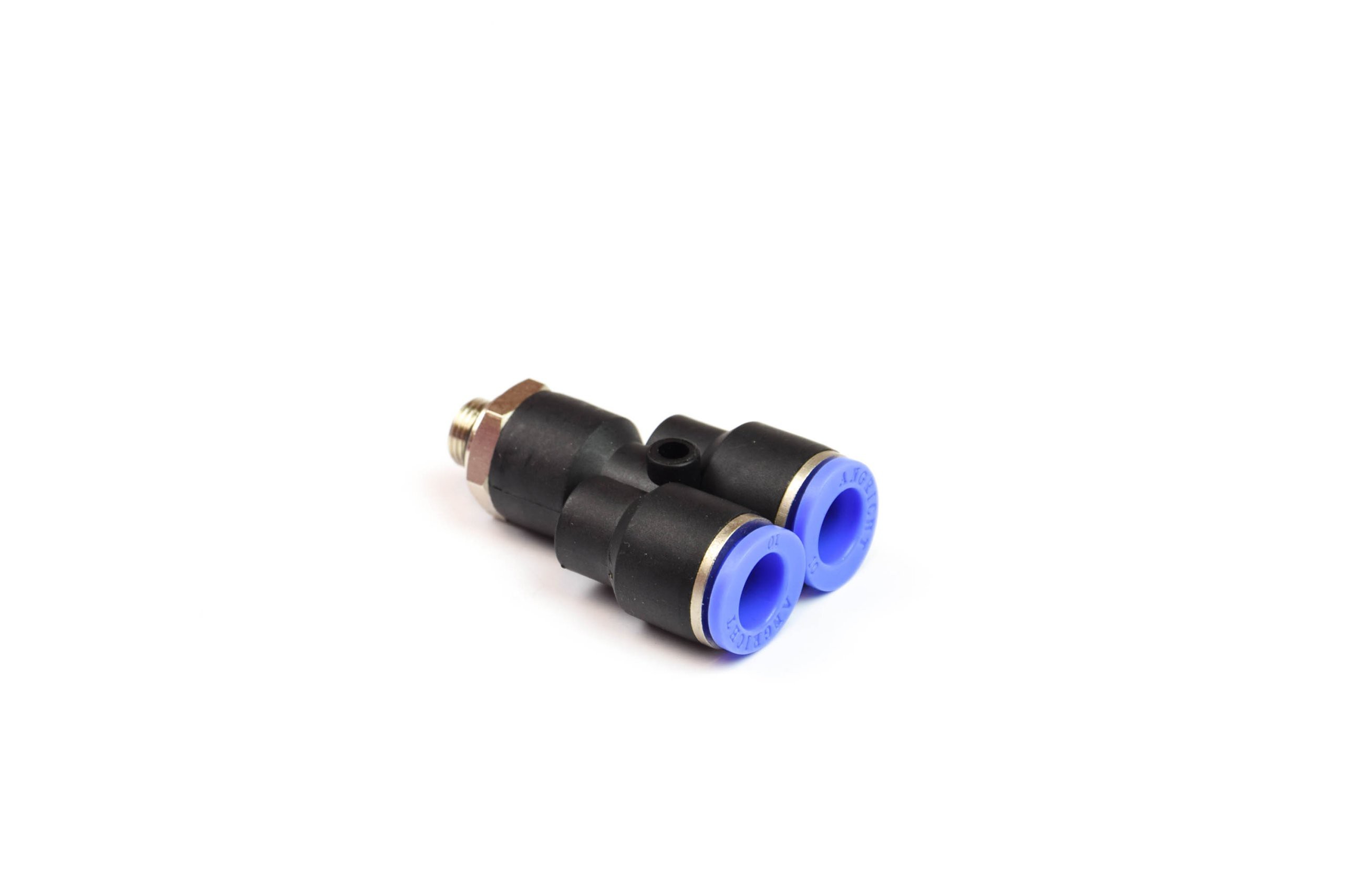 Złączka wtykowa trójnik obrotowy typu Y do instalacji pneumatycznych pozwala na proste i szybkie łączenie elementów instalacji pneumatycznych. Połączenie pomiędzy częścią metalową, a korpusem z tworzywa pozwala na wykonanie obrotu w celu odpowiedniego ułożenia kierunku przewodu.
