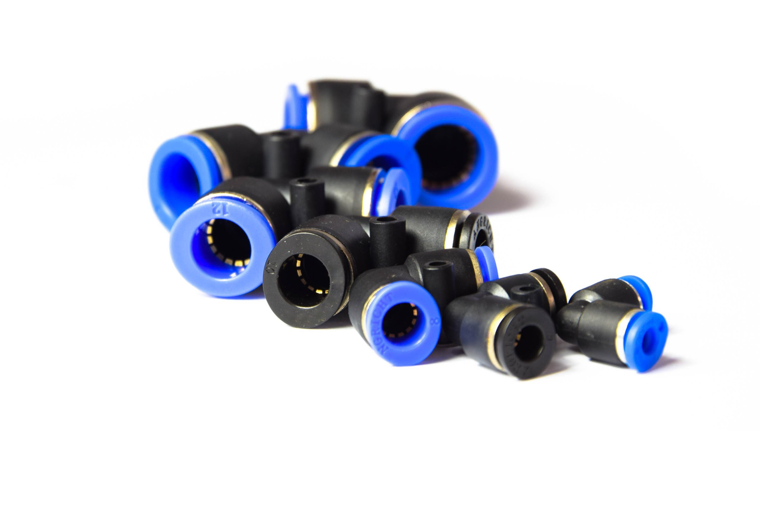 Złączka wtykowa typu kolano do instalacji pneumatycznych pozwala na proste i szybkie łączenie przewodów pneumatycznych.