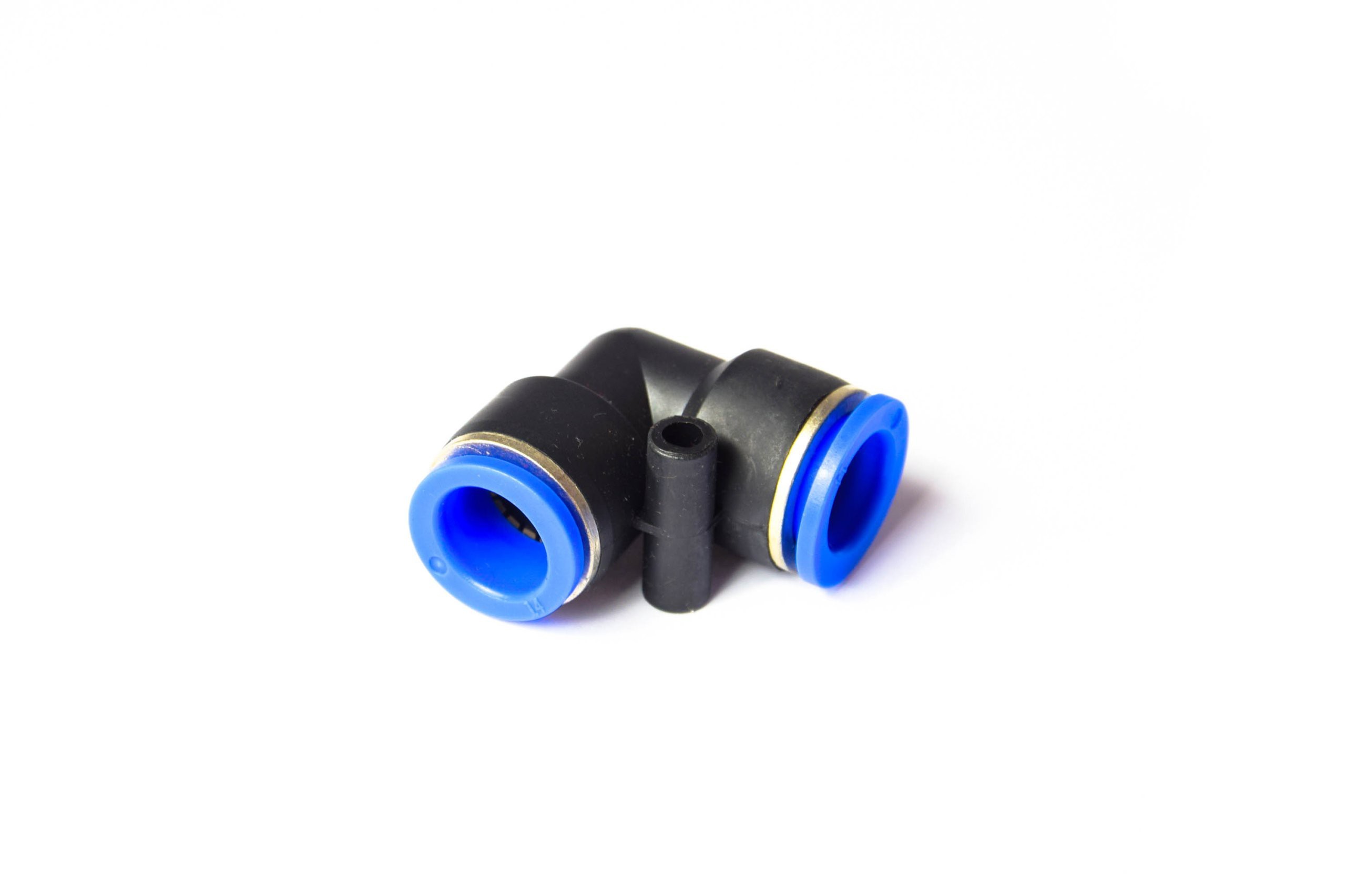 Złączka wtykowa typu kolano do instalacji pneumatycznych pozwala na proste i szybkie łączenie przewodów pneumatycznych.