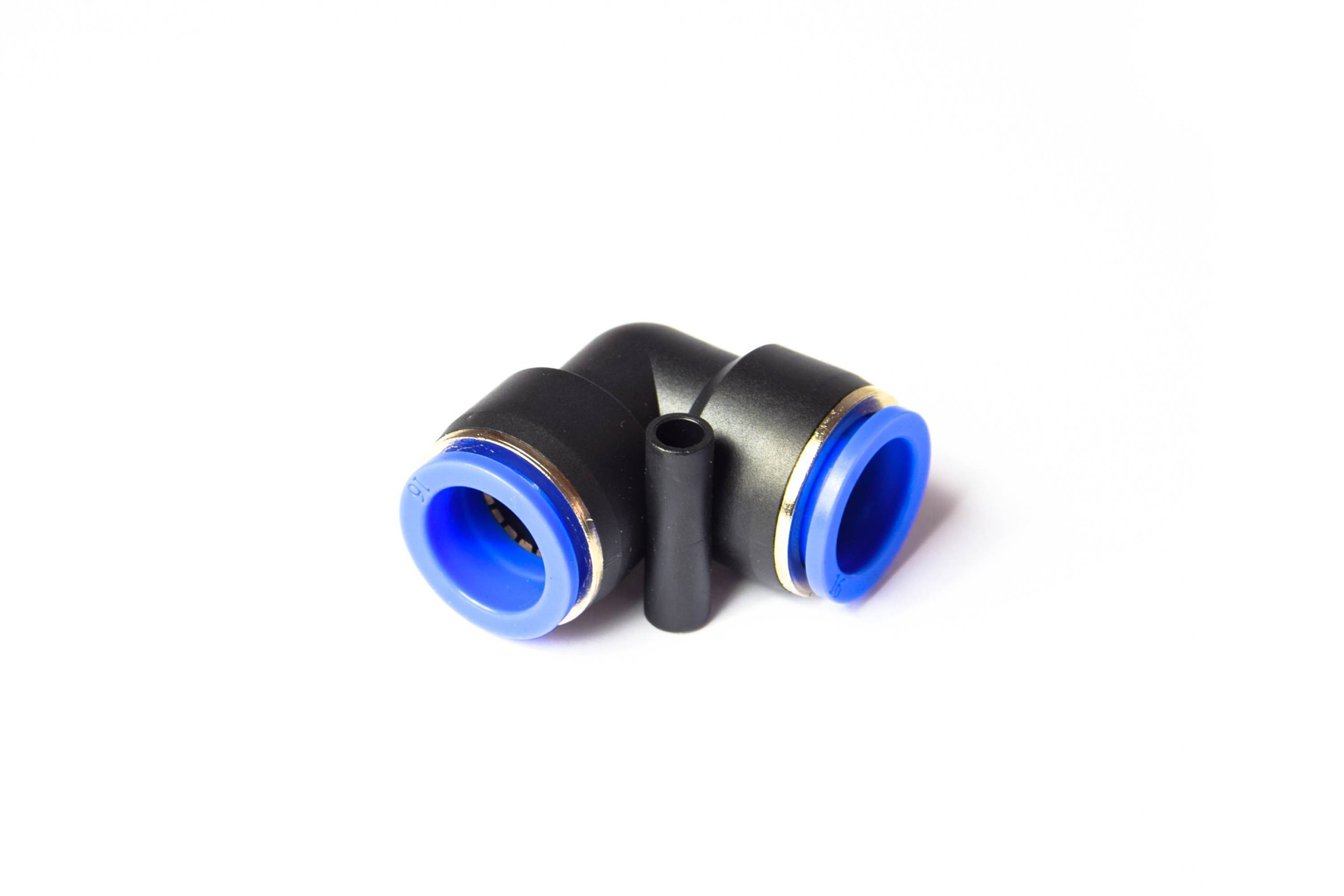 Złączka wtykowa typu kolano do instalacji pneumatycznych pozwala na proste i szybkie łączenie przewodów pneumatycznych.