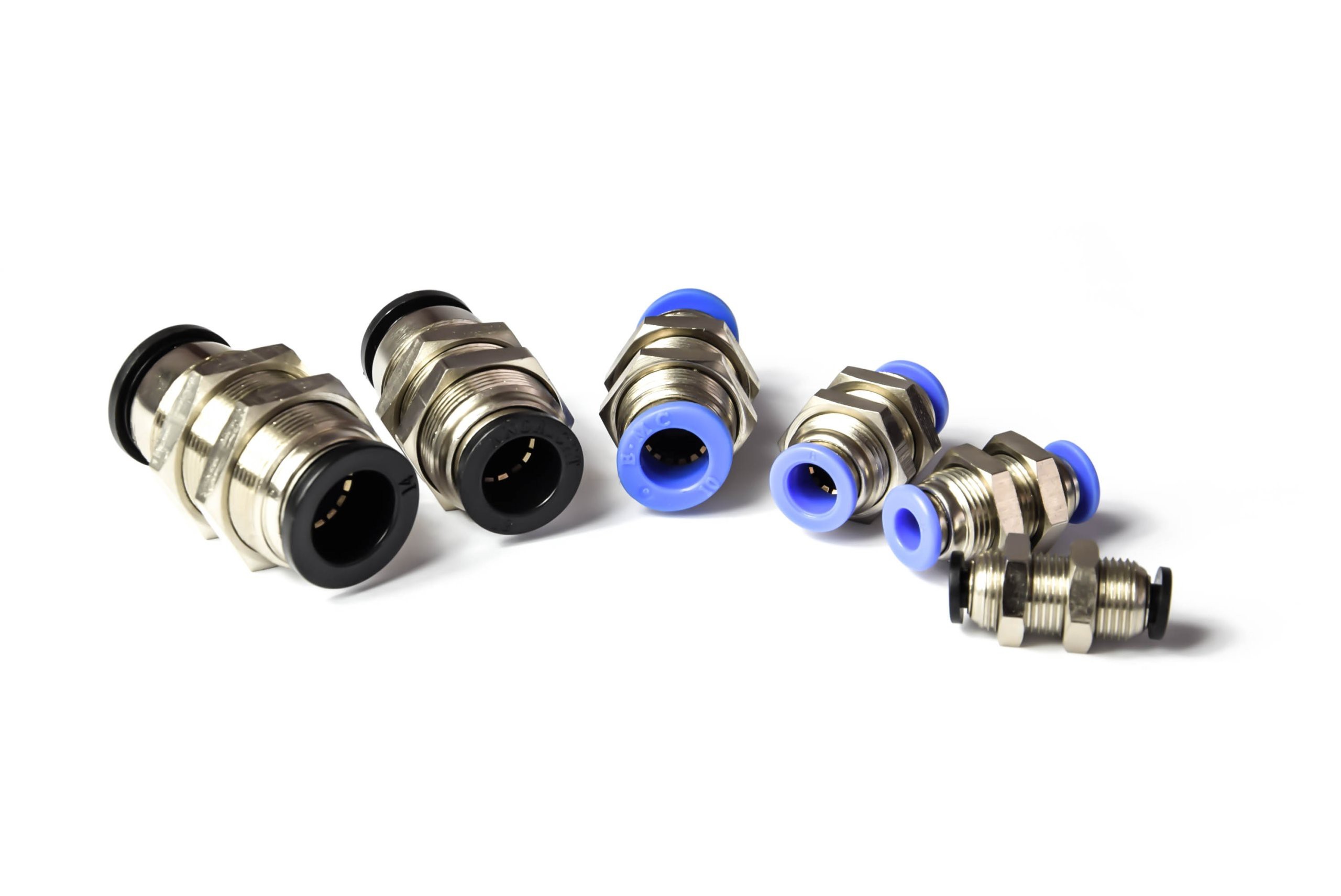Złączka wtykowa, grodziowa typu łącznik przelotowy do instalacji pneumatycznych pozwala na proste i szybkie łączenie przewodów pneumatycznych. Złączka tego typu pozwala na łączenie przewodów i rurek po dwóch stronach ścianki, blachy itp. W zestawie nakrętki mocujące.