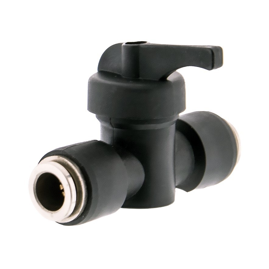 Zawór kulowy służy do odcinania dopływu czynnika w instalacjach pneumatycznych. Złącza wtykowe pozwalają na łatwe wpinanie w instalacje pneumatyczne.